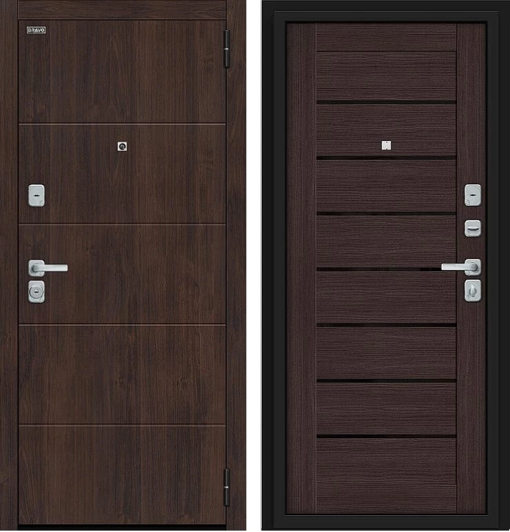 Надежная входная Дверь Браво Прайм/BChrome Almon/Wenge Melinga премиум класса по цене 39 819 руб. Большая толщина стали защитит от проникновения в ваш дом, квартиру или коттедж. Используется очень качественная фурнитура: замки, цилиндры, ручки, защелки. Покрытие и отделка двери изготовлено под внимательным контролем производителя. Дверь имеет долгий срок службы и гарантию.